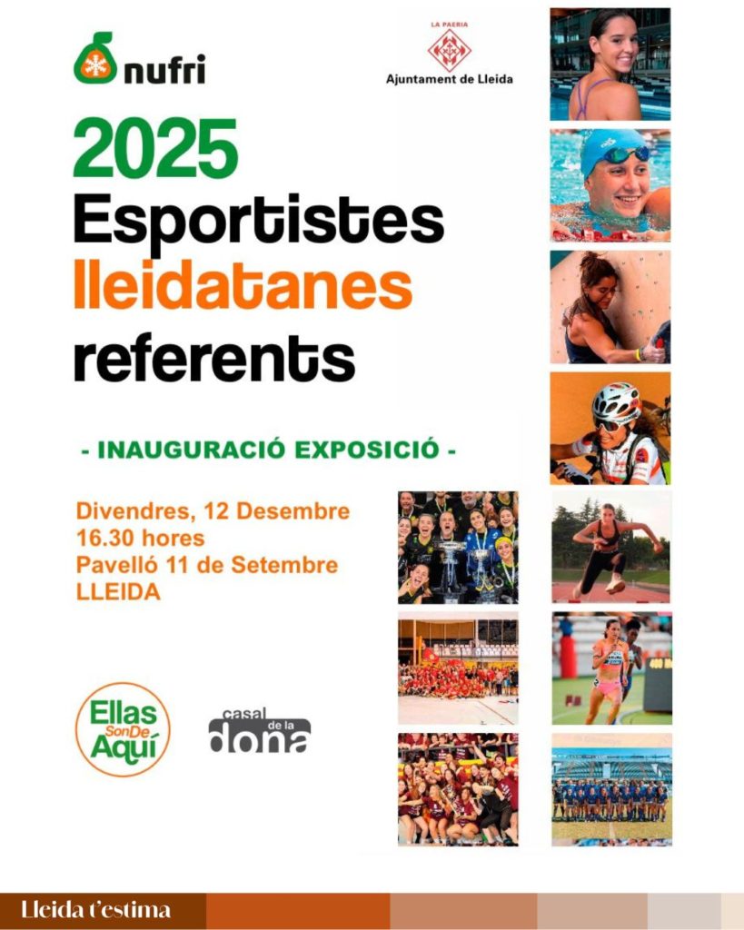 🏃♀️ Amb motiu de la desena edició dels patrocinis de la plataforma #EllasSonDeAquí, l’Ajuntament de Lleida i Nufri volen celebrar el talent i la força de les dones esportistes lleidatanes que han brillat al llarg del 2025, tant en disciplines individuals com en equips.