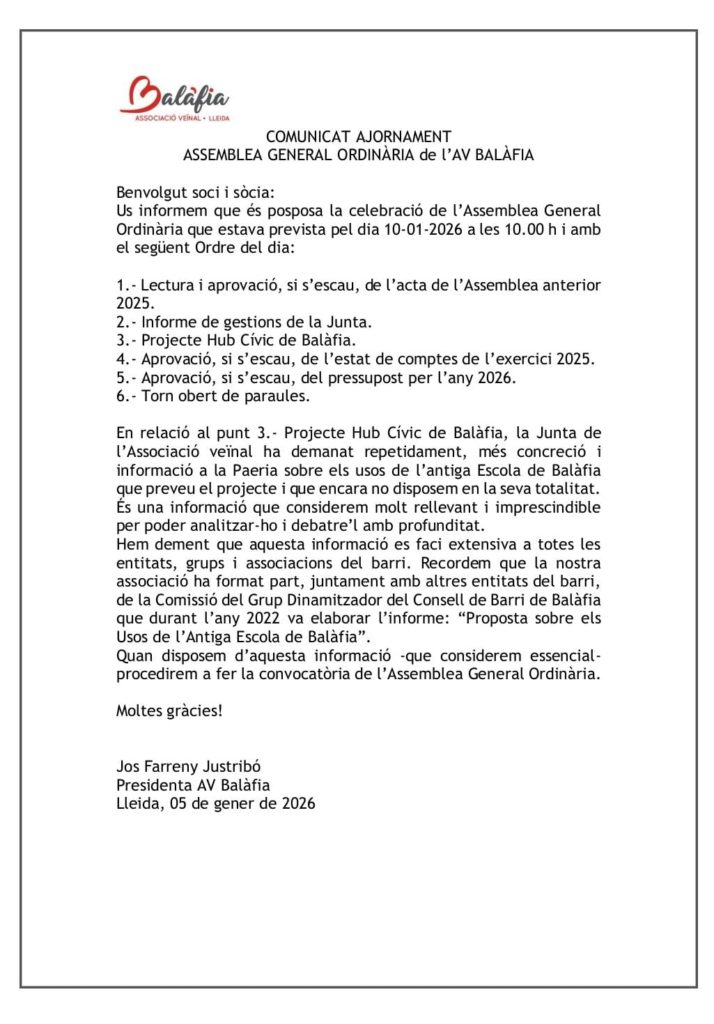 Per saber més sobre aquest barri lleidatà, escolta l’entrevista amb la presidenta de l’entitat veïnal, Jos Farreny, al ‘De porta en porta’: https://www.ua1.cat/?podcast=288638