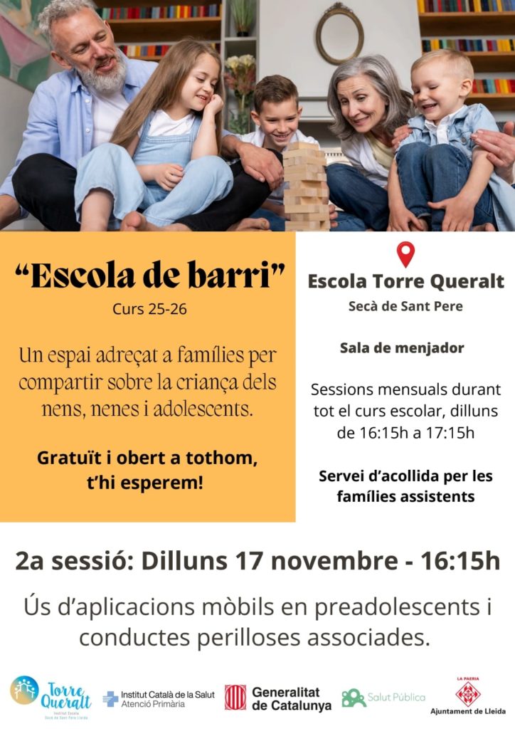 Dilluns vinent dia 17 de novembre es durà a terme la 2a sessió de l'”Escola de Barri” al Secà de Sant Pere.